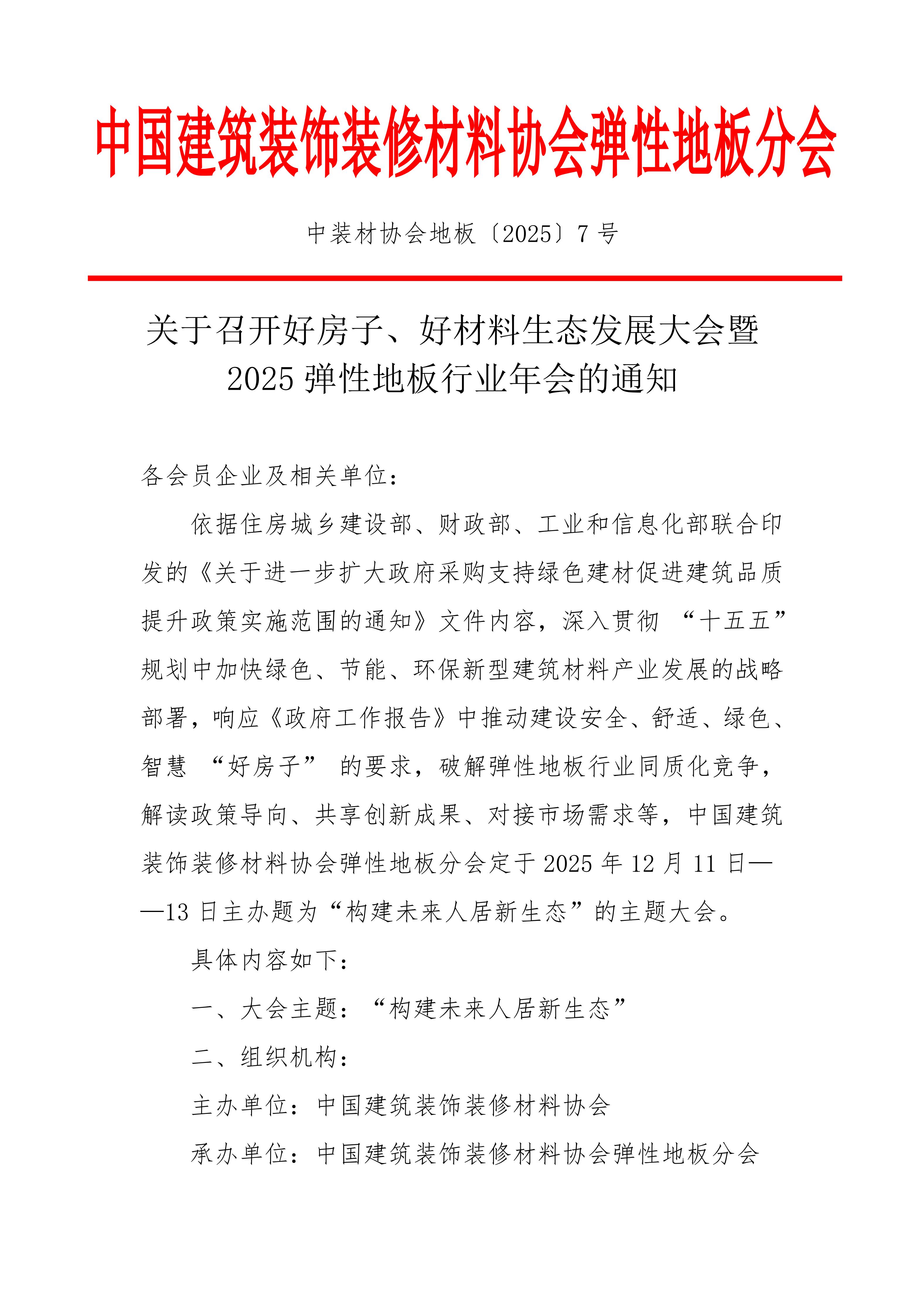 关于召开好房子、好材料生态发展大会暨2025弹性地板行业年会的通知
