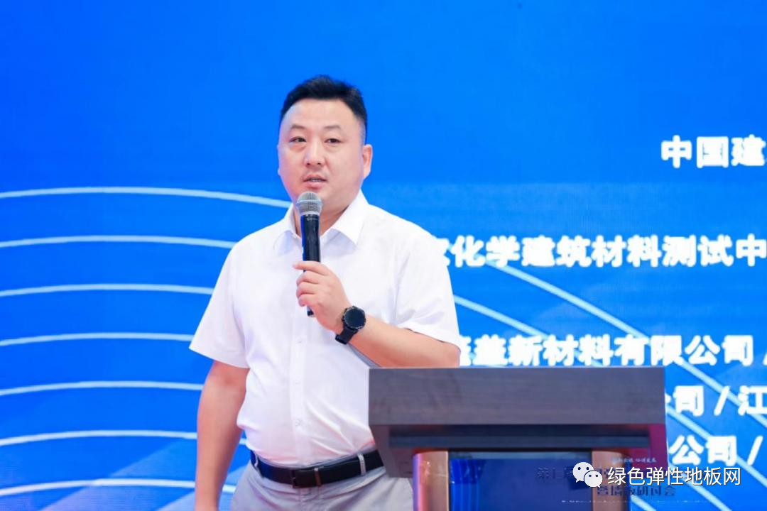 绿水青山就是金山银山,在国家大力引导绿色生产和绿色消费的趋势下,绿色建材产品市场认可度不断扩大,市场份额和质量效益大福提升。国建联信认证中心的认证经理孙双权做了《弹性地板绿色建材产品认证评价标准解读》的主题演讲。
