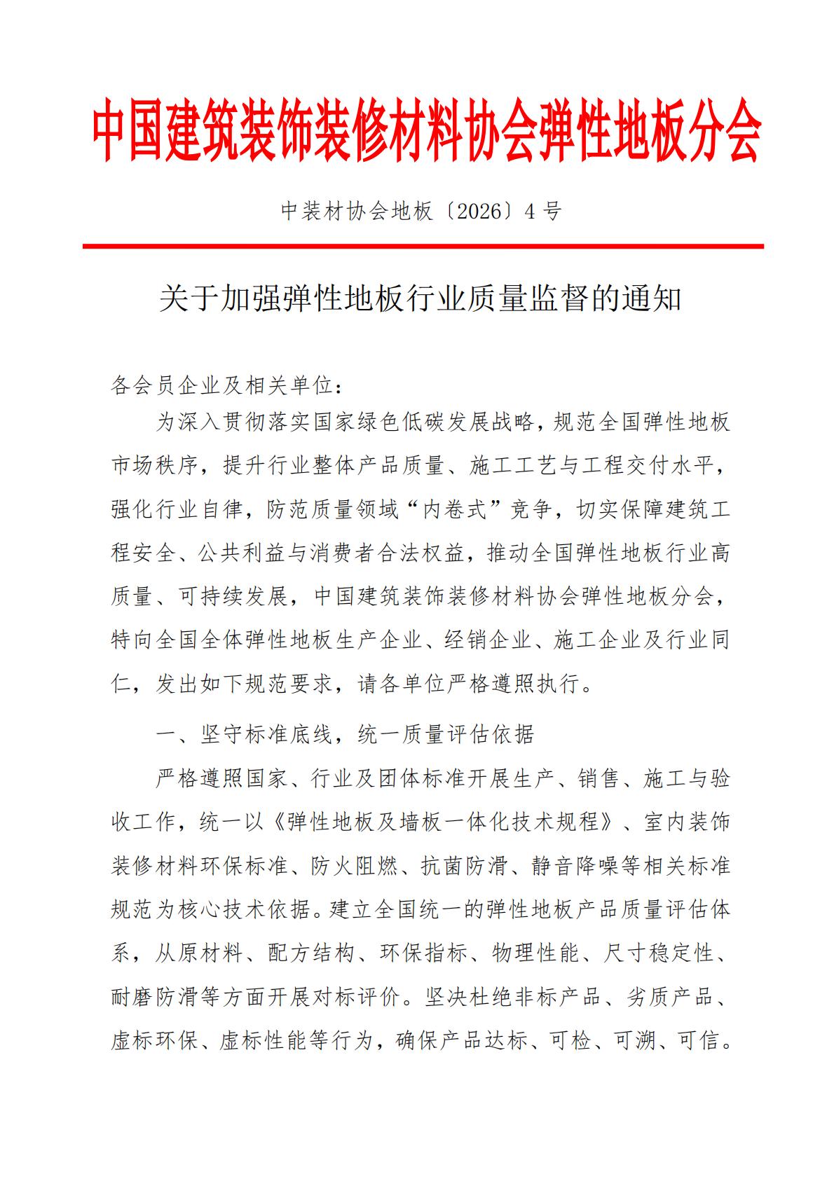 协会通知:关于加强弹性地板行业质量监督的通知