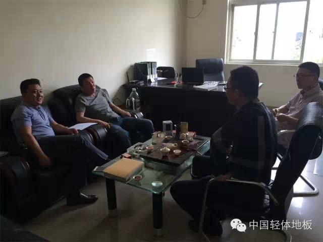 中国建筑装饰装修材料协会弹性地板分会秘书长马金于2015年5月23日-25日走访了江苏省内的部分弹性地板企业:马秘书长第一站到达威达(江苏)建筑材料有限公司,在威达公司的会议室,马秘书长针对当前卷材地板遇到的一些问题以及今年原材料的大幅上涨对今年弹性地板的影响进行了深入的交谈。